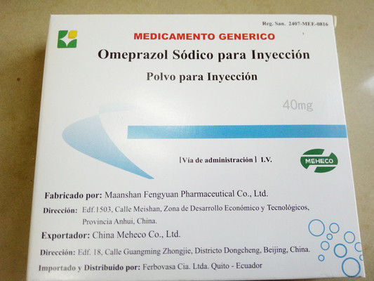 أوميبرازول الصوديوم للحقن 2 مل / 7 مل / 10 مل 40 ملغ / 60 ملغ مسحوق أبيض مسحوق الليوفيليز